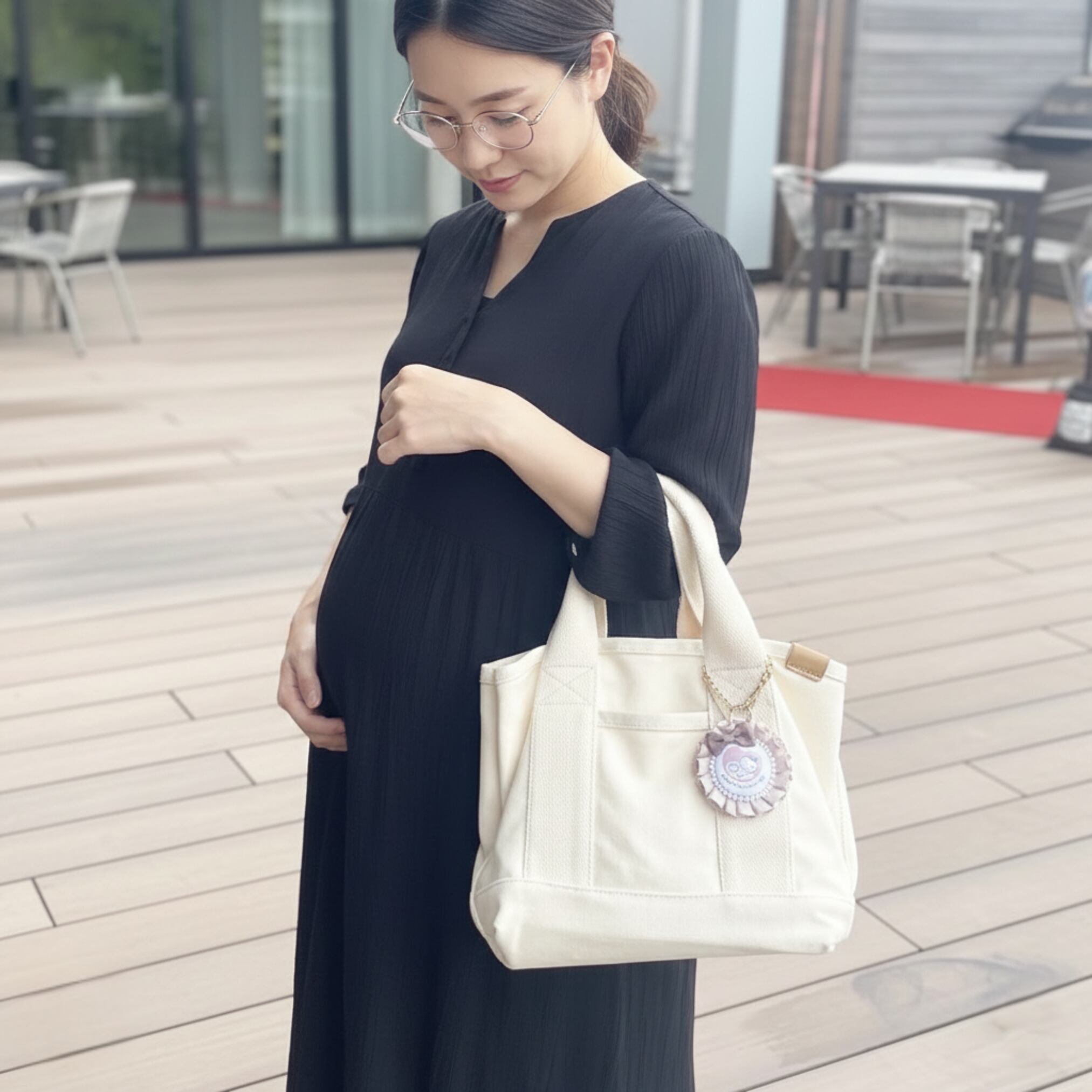 マタニティ期の装いにも自然に馴染み、