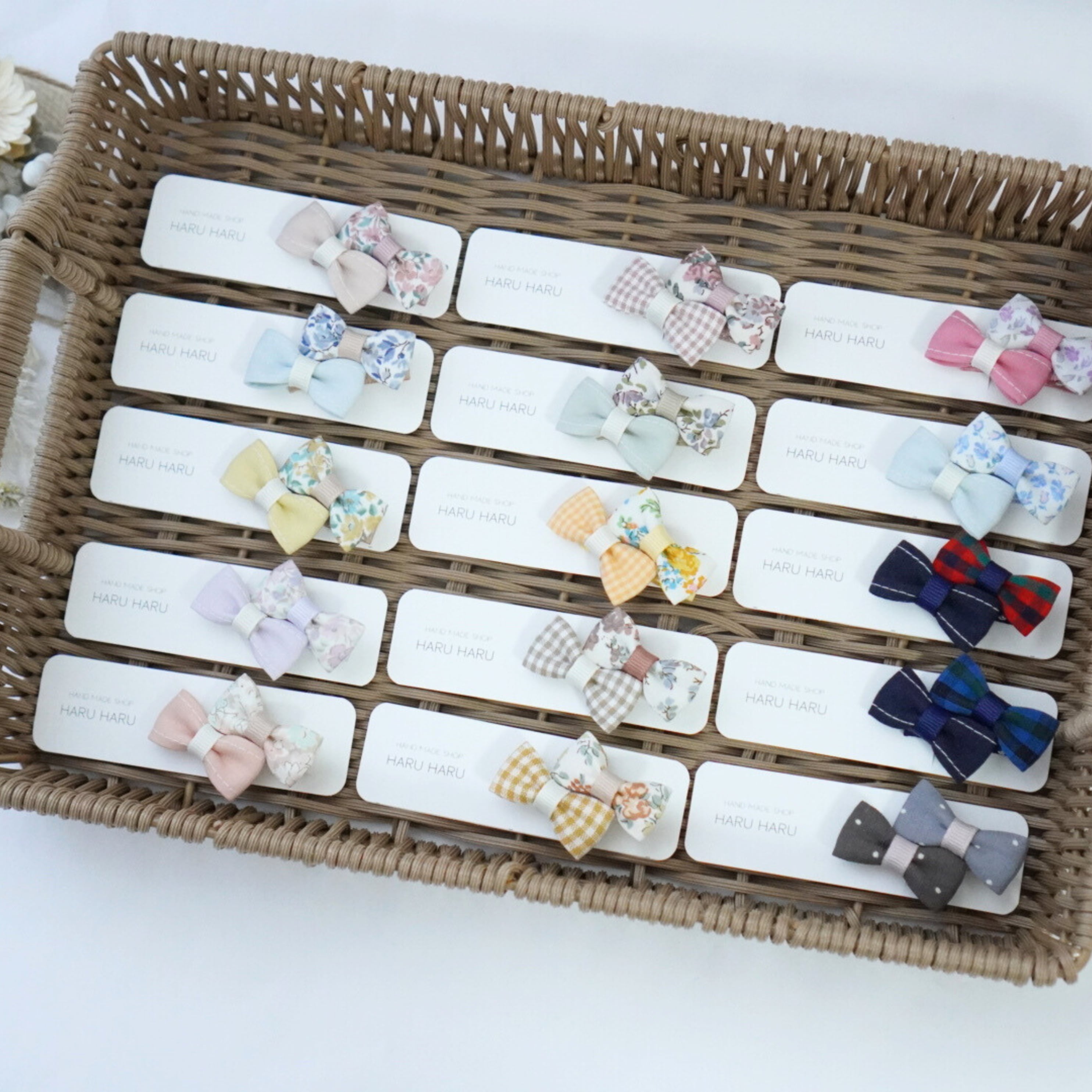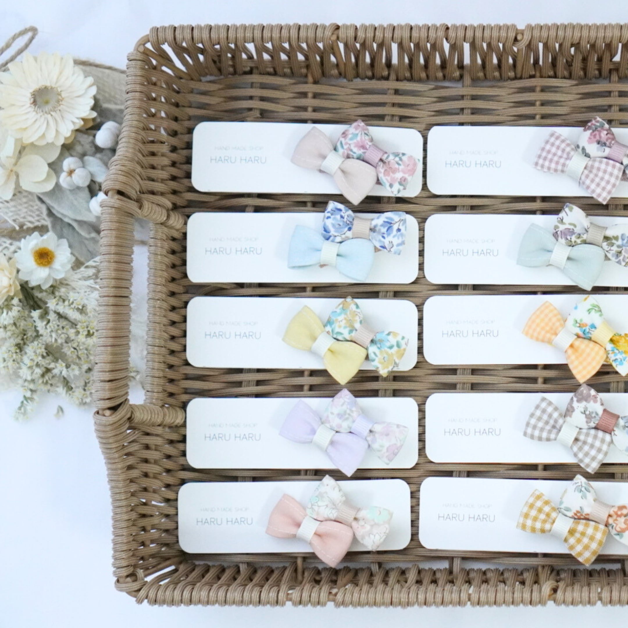 ダブルリボン ベビーヘアクリップ|LIBERTYプリント/滑り止め付き